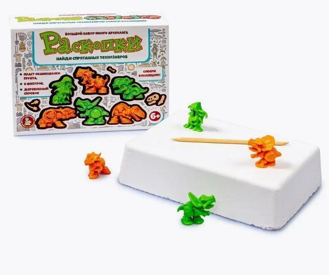 Набор юного археолога для раскопок "Технозавры" (динозавры роботы) - очень интересная детская игра, это отличный подарок для мальчика. Раскопки сокровищ позволяют провести интересный и увлекательный эксперимент дома. В набор входит 6 классных находок, среди которых – динозавры. Уникальный легкий грунт в комплекте делает процесс раскопок доступным даже маленькому ребенку 6 лет, позволяя ему с легкостью справиться самостоятельно.