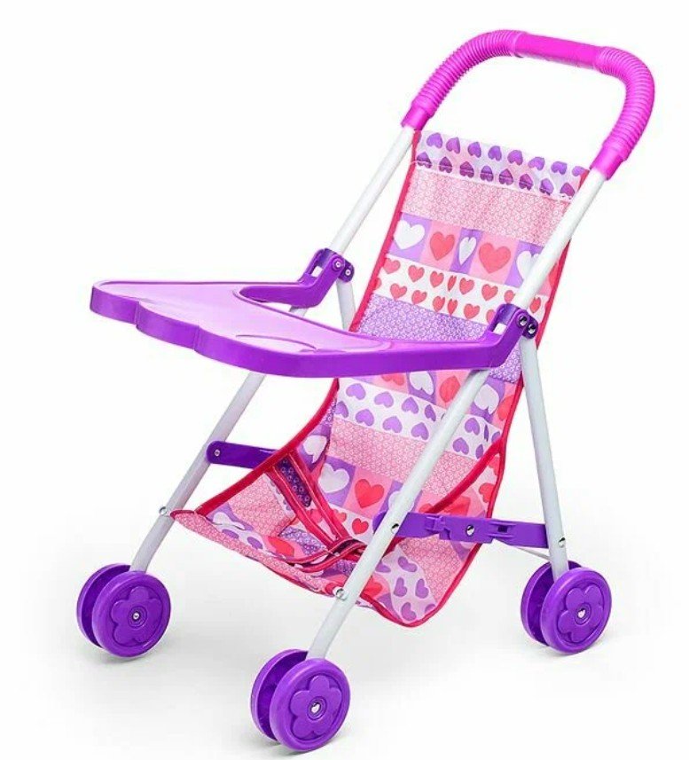 - Коляска кукольная (металлическая, складная, цвет фиолетовый, с принтом) в пакете CS4832B