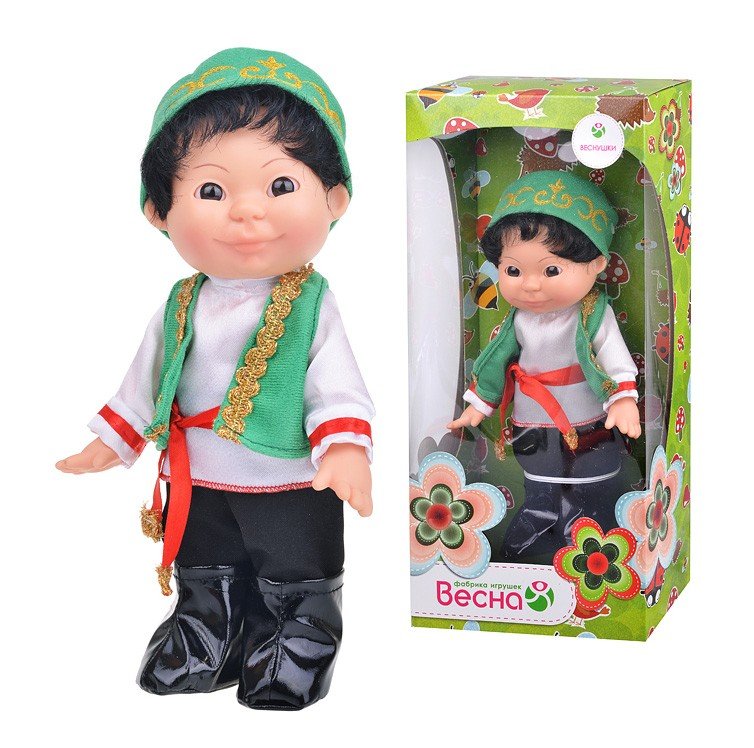 Милая кукла с черными волосами от компании Весна. Одета в яркий национальный костюм с головным убором. Изготовлена из качественных, гипоаллергенных материалов. Позволит ребенку весело провести время и придумать много интересных игр.