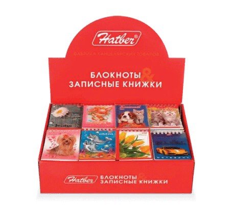 Блокнот МАЛЫЙ ФОРМАТ А7 65х100мм, 40л, гребень, картон, клетка, дисплей, HATBER, Ассорти, 40Б7B1гр 1
