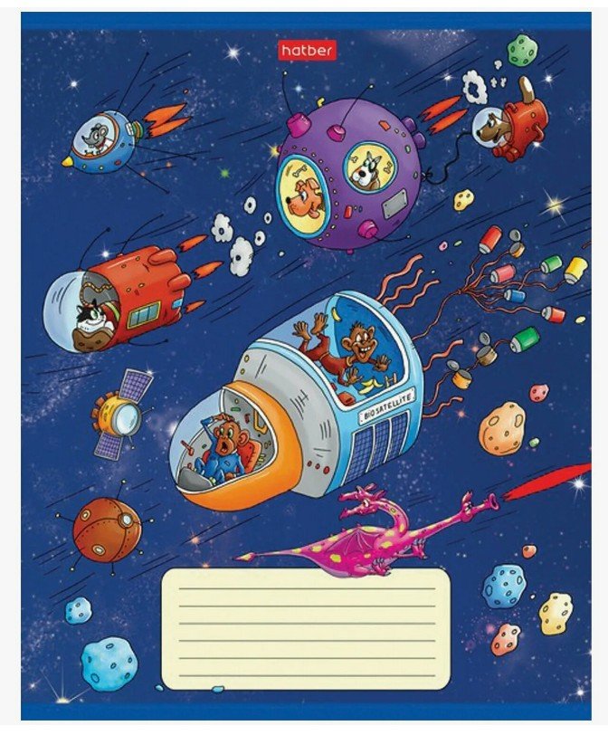 - Тетрадь 18л. HATBER клетка, обложка картон, Космическое приключение (5 видов в спайке),18Т5В1 106263