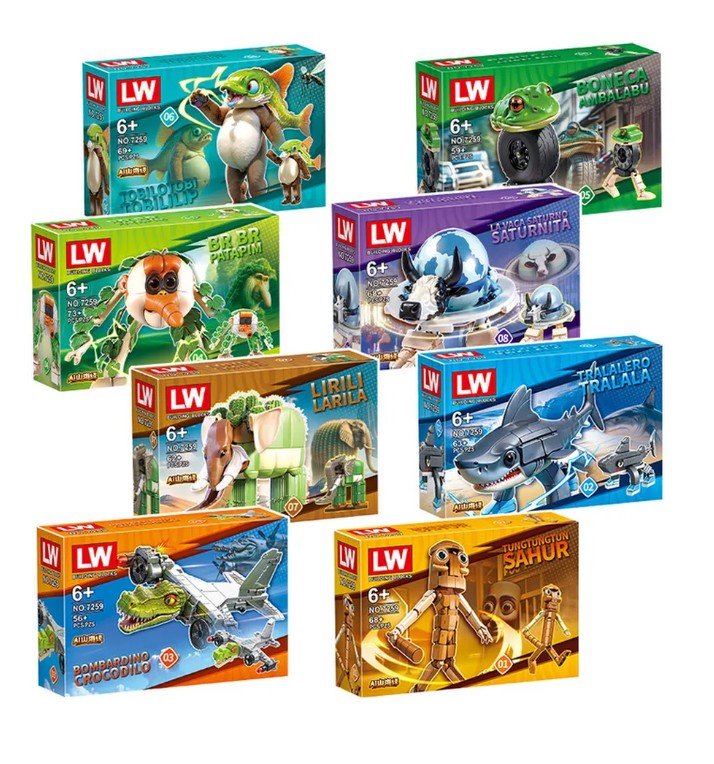 7259AI - это набор кирпичиков для сборки восьми разных фигур, включая тунгтунгу-рубика, азиатский олень, коренастый человек, жираф, акула на колесах и другие. Эти кирпичики позволяют детям проявить свою фантазию и творчество, создавая уникальные модели. Они идеально подходят для мальчиков, которые любят сборку игрушек и открытые игры. Каждая фигура имеет свои особенности и детали, что делает процесс сборки интересным и увлекательным. Собирайте вместе с детьми и наслаждайтесь совместным времяпрепровождением!