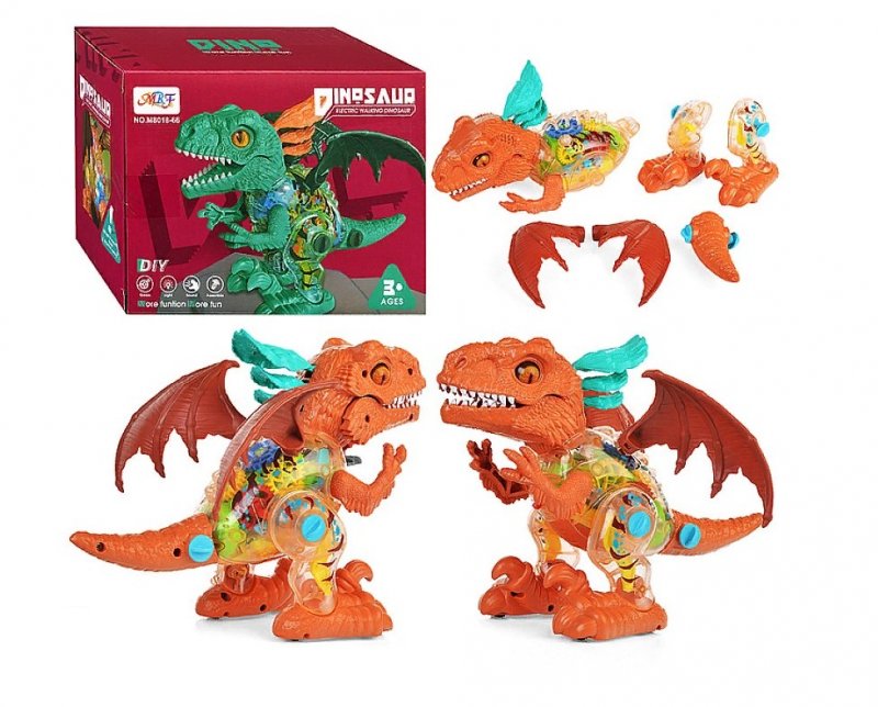 Издает звук рык динозавра и воспроизводит мелодию без слов.