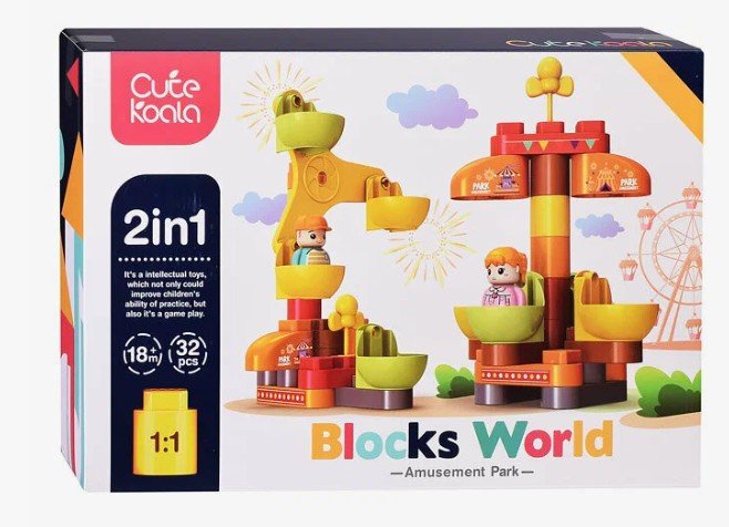В комплекте 32 крупных элемента. Материалы: пластик, полимерные материалы. Соответствует требованиям безопасности продукции. Для детей от 18 месяцев.
