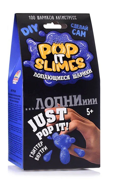 Набор для опытов и экспериментов "Юный химик". "Pop it slimes. Лопающиеся шарики. Синий. 912. С помощью этого набора можно сделать 100 лопающихся шариков антистресс с глиттером! Замешай 2 раствора, сосчитай до десяти и ЛОПАЙ!
