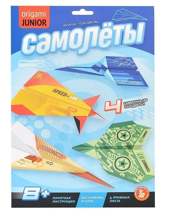 Оригами "Самолеты", 4 цветные модели 8 + лет