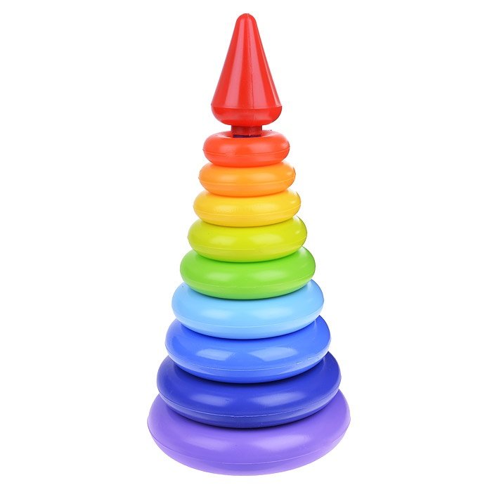 Пирамида "Радуга" 29 см (11 деталей) игрушка РосИгрушка 9221в. Радужная пирамида "Радуга" известного российского производителя РосИгрушка - эта классическая игрушка и незаменимый помощник родителей, благотворно влияющая на развитие ребенка. Пирамида представляет собой штырек, на который надеваются 9 разноцветных колечек разного диаметра и верхушки в виде цилиндра. Изделие выполнено из качественного пластика, окрашенного яркими нетоксичными красителями, имеет требуемый сертификат соответствия детских игрушек. Нанизывая колечки на штырек, дети улучшат координацию движений, моторику рук и научатся сравнивать предметы по их размеру. А благодаря богатой цветовой гамме, малыш выучит новые цвета и оттенки.