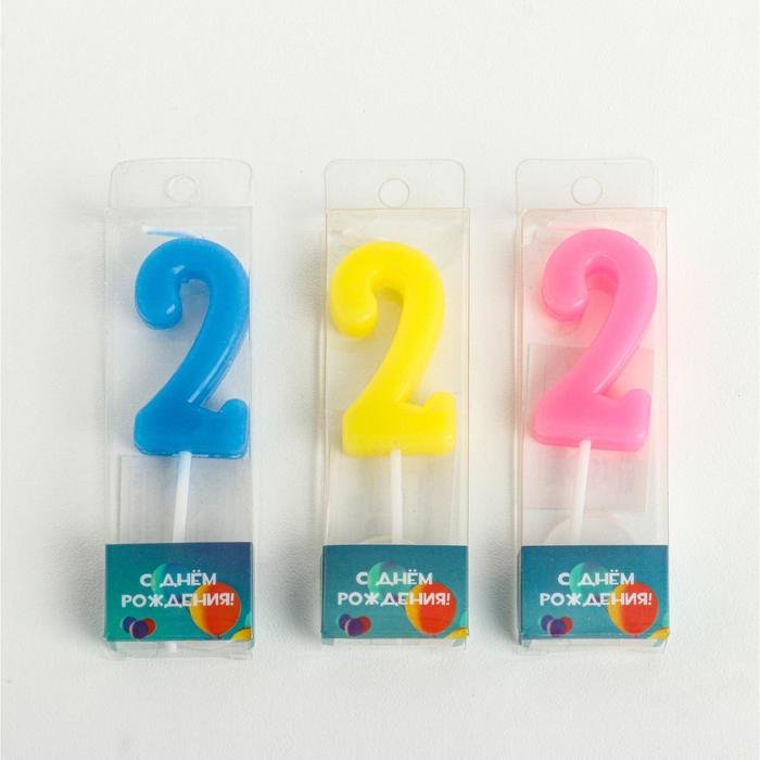Свеча в торт цифра 2, МИКС 2385809