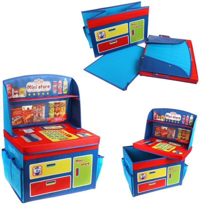 Эффектная корзина "Магазин" прекрасно подходит для компактного хранения детских игрушек. В сложенном виде она занимает совсем немного места, легко складывается и раскладывается. Ребёнку понравится аккуратно складывать в корзину свои игрушки, ведь она такая интересная! Аксессуар может послужить не только корзиной, но и чудесным уголком для игр. Крышка изделия раскладывается, образуя игровое поле для сюжетно-ролевой игры в "магазин". По бокам изделия имеются 2 текстильные ручки для переноски, а также 4 кармашка для хранения различных мелочей. Размер корзины (ДхШхВ) составляет 40х30х28|55 см. Изготовлено из текстильных материалов. Рекомендованный возраст: 3 года +