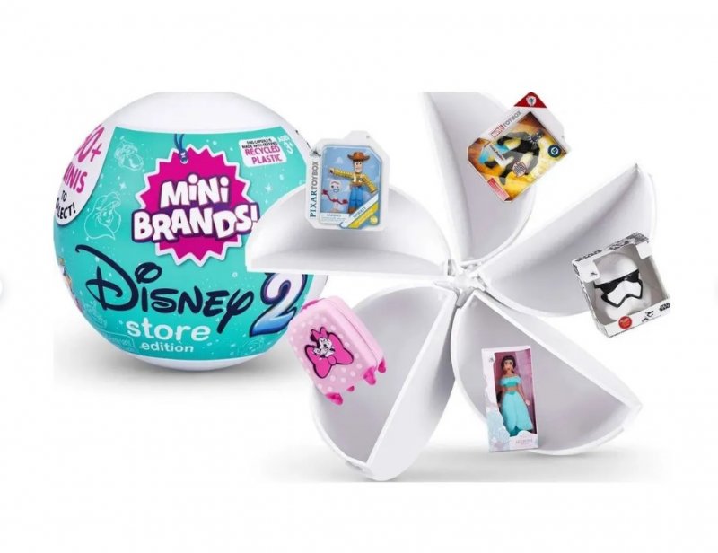 Игрушка Zuru 5 Surprise Mini Brands Disney выглядит как непрозрачный шар. Внутри содержатся 5 миниатюр, являющихся точными копиями игрушек фирмы Дисней.