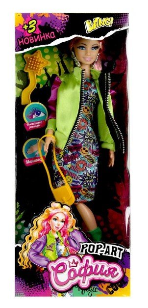 - Кукла София, 29см, (руки и ноги сгиб, ресницы, маникюр)с акс, в коробке 66001-POPART-S-BB