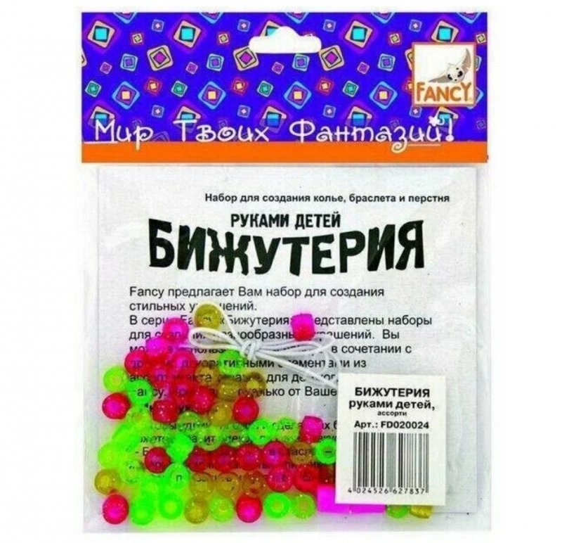 Набор разноцветных пластиковых бусин круглой формы для создания украшений и декора одежды. В наборе предусмотрен эластичный шнур для нанизывания.
