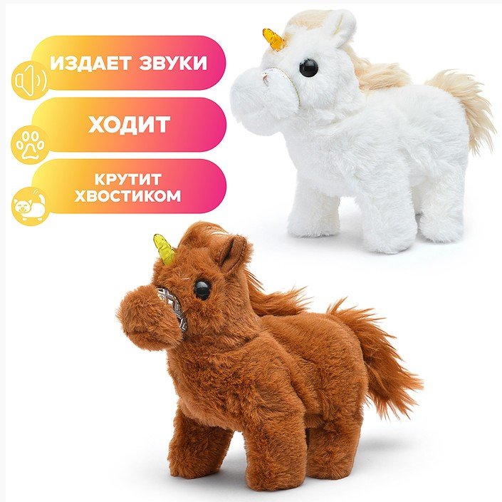 Мягкая плюшевая лошадка для детей забавно двигается, шевелит хвостиком и кричит.
