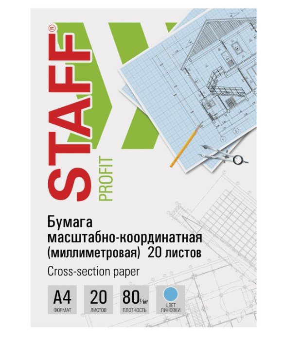 Масштабно-координатная бумага STAFF предназначена для выполнения чертежно-графических работ карандашом или тушью. Применяется при создании инженерных схем и чертежей, планов и карт, а также при рисовании выкройки.