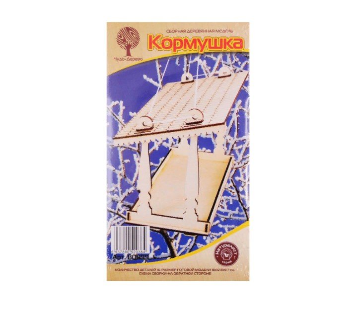 Сборная модель VGA Wooden Toys "Кормушка" (80099). Сборная деревянная модель. Комплект включает в себя набор деталей, вырезанных на листовом дереве (фанера); схему сборки. Детали скрепляются в порядке и очередности, обозначенной в инструкции. Для прочности соединений рекомендуется использовать клей. Модель можно раскрасить, используя темперные краски, можно использовать прибор для выжигания по дереву.