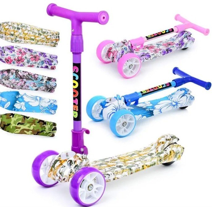 - Самокат 3-х кол., цвет микс, светящиеся колеса, PU, ABEC 7 U037275Y