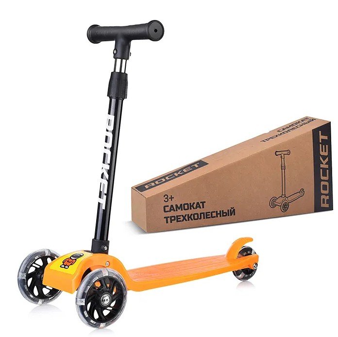 - Самокат трехколесный ROCKET колеса световые PU, цвет розовый R0077.РК