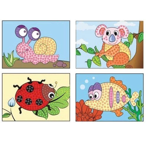 Набор для создания аппликации из разноцветных блестящих пайеток. В процессе работы пайетки приклеиваются на клейкие фрагменты картинки-основы. Получившейся сверкающей картинкой можно украсить интерьер. Набор станет прекрасным подарком. В ассортименте 4 дизайна ассорти (улитка, коала, рыбка, божья коровка). В наборе: картинка-основа с клеевым слоем 15х21 см, пайетки, восковой мелок (для зацепления пайеток).
