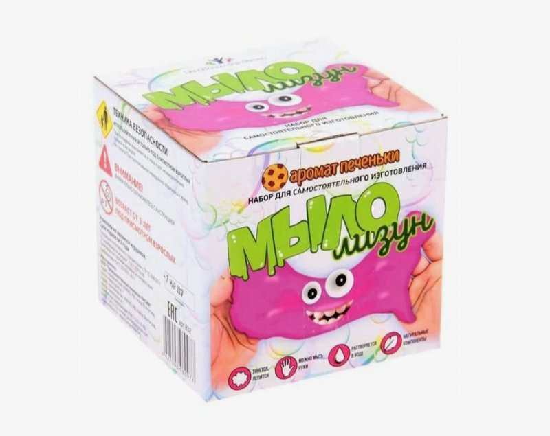 Висма Мыло-лизун Печеньки Набор для опытов и экспериментов Юный химик Набор для самостоятельного изготовления Мыло-лизун компании БрикНик - это необычный набор для создания оригинального мыла-лизуна, которое после изготовления тянется, лепится, растворяется в воде. Творческий набор изготовлен из высококачественных материалов и предназначен для детей от 6 лет. Набор Мыло-лизун подарит Вашему ребенку возможность проявить себя и свои способности в необычном мыловарении. А готовое изделие можно подарить родным или друзьям или использовать самостоятельно. Входит в комплект: Жидкая мыльная основа; Картофельный крахмал; Глицерин; Краситель; Ароматизатор; Миска для замешивания; Пошаговая подробная инструкция.