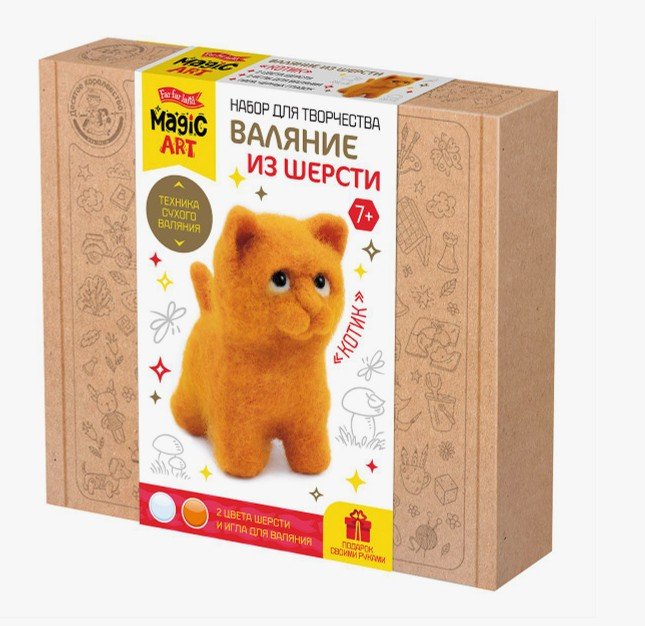 Набор для валяния Котик включает все необходимое для создания симпатичной игрушки в технике сухого валяния.