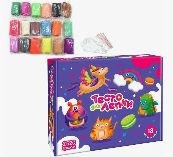 Тесто для лепки в коробке 18 цв (36 колбасок по 70 гр) П135