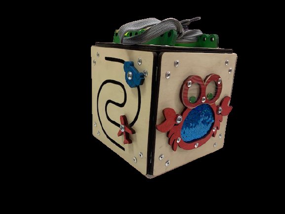 Бизикуб Крабик - это целый набор из 6 граней бизибордов и игр по методике Монтессори. Один бизикуб может заменить до 6 игрушек, а это хорошая экономия денег. С помощью бизикуба ребенок познает мир, он учится нажимать, открывать, крутить различные предметы, переключаться с одного вида деятельности на другой. Наполнение: 1-я сторона: крабик с пайетками, 2-я сторона: магнитный лабиринт - с помощью магнитной ручки нужно провести металлический шарик по лабиринту, 3-я сторона: шнуровка 2 цвета, 4-я сторона: часы с цифрами и геометрическими фигурами, 5-я сторона: межполушарная грань с самолетиком и машинкой, 6-я сторона: времена года и месяцы.