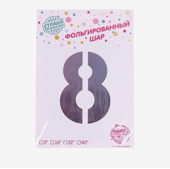 Шар фольгированный 40", цифра 8, цвет радуга