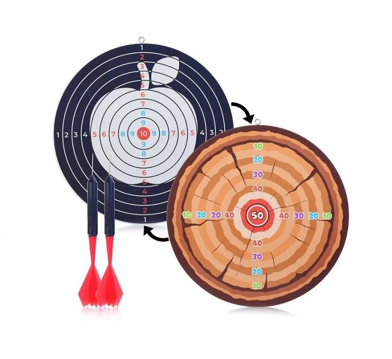 В набор Дартс MEGA TOYS входит мишень из прочного и упругого материала с двусторонней печатью и 2мя дротиками. Мишень сделана с удобной и надежной металлической петелькой для крепления.